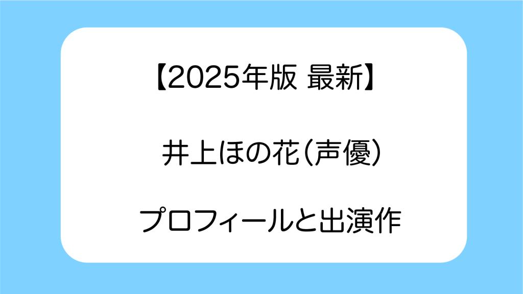 井上ほの花(声優)プロフィールと出演作【最新版】
