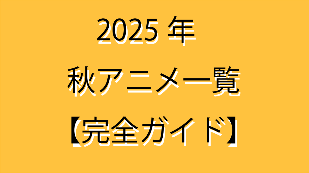 2025年秋アニメ一覧【完全ガイド】 2025年の秋アニメは、例年以上に豊作のシーズンとなりました。「SPY×FAMILY Season3」や「僕のヒーローアカデミア FINAL SEASON」といった超話題作に加え、「ワンパンマン 第3期」「らんま1/2 第2期」「不滅のあなたへ S... -
